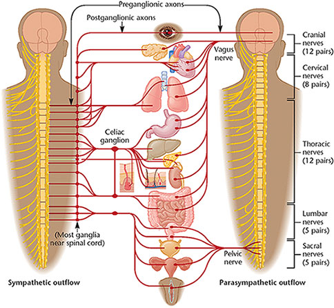 Within the body the nerves branch out like telephone wires from an exchange. They run to every part of the body, from the soles of the feet to the top of the scalp and from just below the skin to the inner organs such as the heart, liver and lungs. Nerve cells have the same basic structure as all the other body cells, with a surrounding membrane containing the nucleus and cytoplasm, but they have a very special, elongated shape. A typical motor nerve, carrying instructions from the brain to the muscle, has a tuft of short, root like projections, called dendrites, at one end. At the other end is a long, thin projection, called the axon.Most nerves act as links in a chain of nerve cells rather than connecting directly to a muscle. In such a chain, each axon is in near contact with the dendrites of the next cell, but there is a tiny gap between them. Nerve impulses jump this gap with the help of chemical messengers known as neurotransmitters. The system has two main divisions: The central nervous system (CNS), which consists of the brain and the spinal cord, and the peripheral nervous system, which includes all the nerves that connect the CNS to every organ and area of the body.